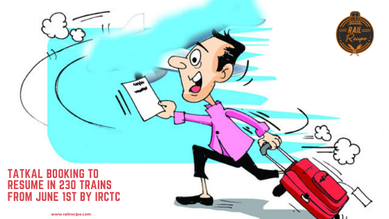 - The resumption of Tatkal ticket booking will be implemented with effect from the date 31st of May, 2020 at 08:00 hours.